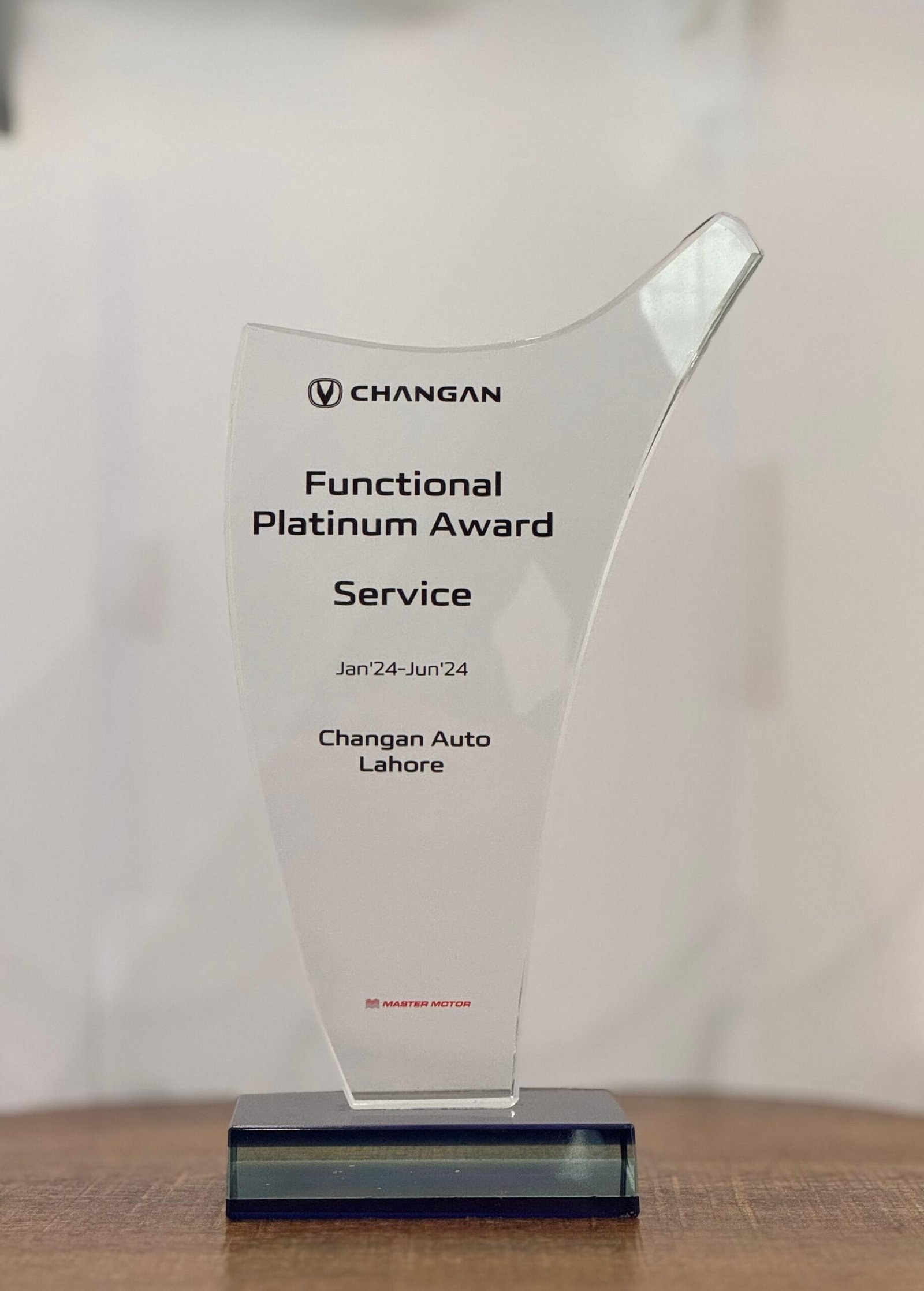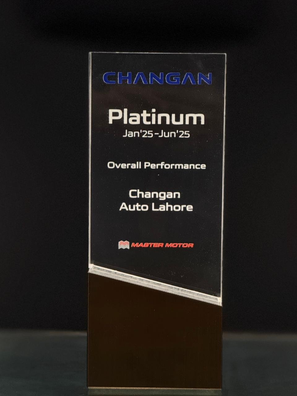 Changan Auto Lahore proudly secures the Platinum Award, a testament to excellence in sales performance, customer satisfaction, and operational standards.
